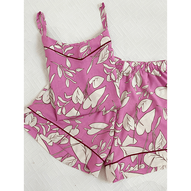 Hojas blancas sobre rosa - Tiras y short (Rayón)